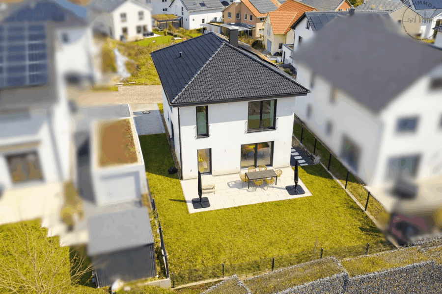 Dieses freistehende KfW-40-Plus-Einfamilienhaus wurde im Jahr 2023 als hochwertiges Holzständerhaus der Firma ELK errichtet und überzeugt durch klare Architektur, eine durchdachte Raumaufteilung sowie äußerst niedrige laufende Nebenkosten. Auf ca. 149 m² Wohnfläche, verteilt auf zwei Vollgeschosse, bietet das Haus zeitgemäßes, nachhaltiges Wohnen auf hohem Qualitätsniveau.