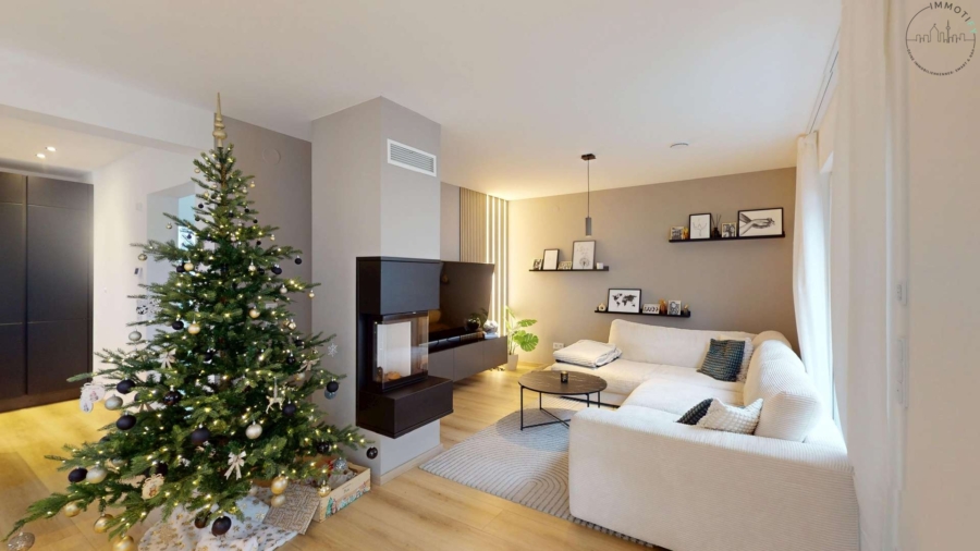Eine Luft-Luft-Wärmepumpe, Photovoltaikanlage mit Speicher, zentrale Lüftungsanlage, Smart-Home-Steuerung sowie Netzwerk- und Glasfaseranschluss sorgen für hohen Wohnkomfort, Effizienz und langfristige Zukunftssicherheit.