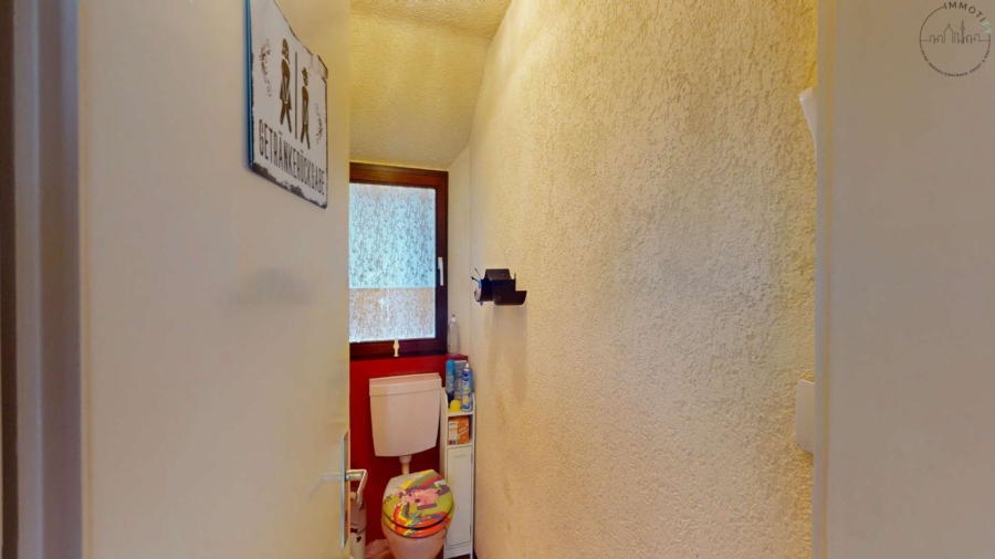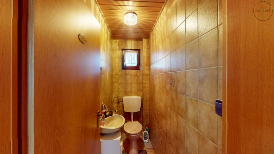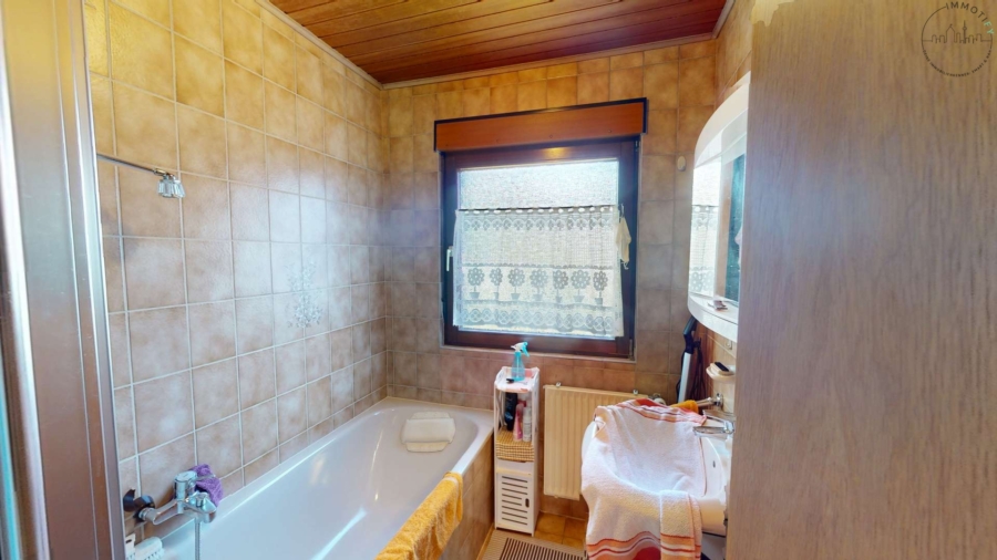 Das Erdgeschoss verfügt über ein Badezimmer mit Badewanne und Fenster sowie ein separates WC.