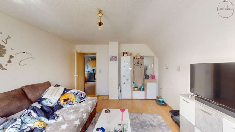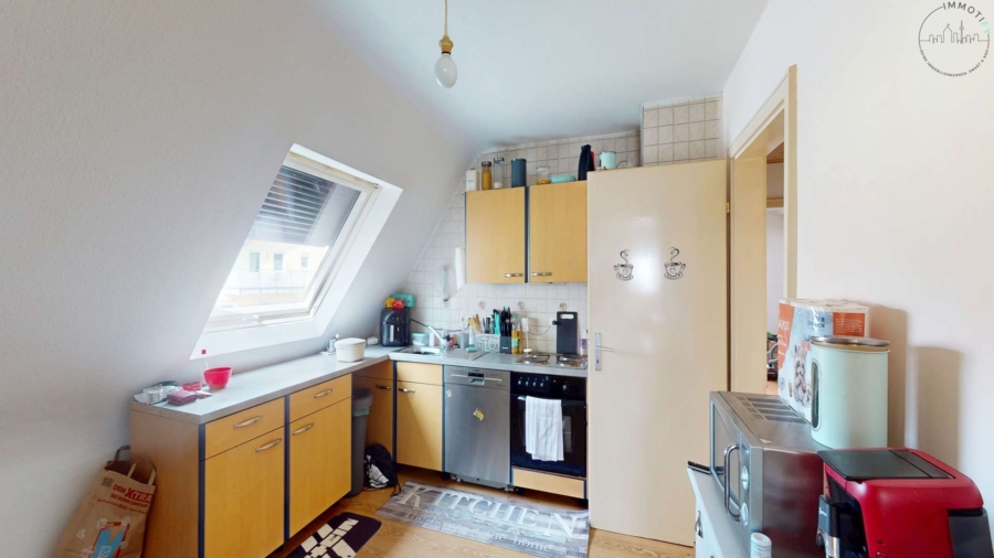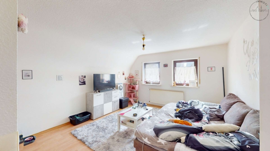 Aktuell ist das Dachgeschoss seit etwas mehr als einem Jahr für 810 € warm vermietet. Die Mieterin ist über das Verkaufsvorhaben informiert und hat bereits signalisiert, sich bei Bedarf umgehend anderweitig umzuschauen. Eine zeitnahe Gesamtnutzung des Hauses ist daher grundsätzlich realistisch darstellbar.