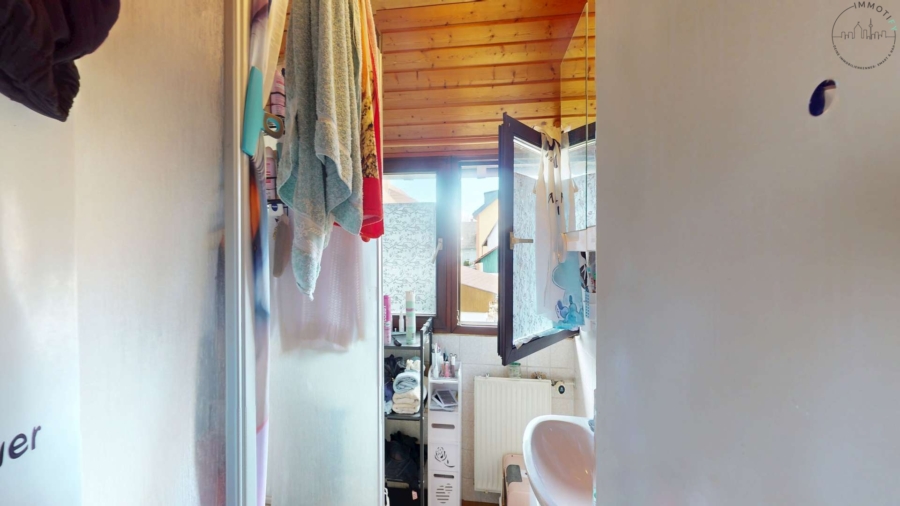 Im Dachgeschoss befindet sich ein weiteres Badezimmer mit Dusche und Fenster, ebenfalls ergänzt durch ein separates WC.