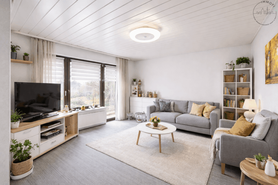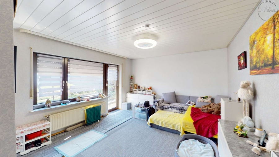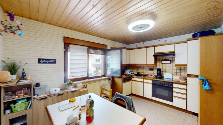 Das ursprüngliche Baujahr liegt bei 1956, im Jahr 1986 wurde die Immobilie durch einen Anbau erweitert. Sowohl das Wohnzimmer im Erdgeschoss als auch das Wohnzimmer im Dachgeschoss befinden sich in diesem Anbau und sorgen auf beiden Etagen für ein angenehmes, großzügiges Raumgefühl.