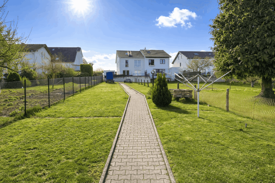 Das Grundstück umfasst ca. 642 m² und bietet einen schönen Außenbereich. Besonders praktisch ist die Zufahrt zum Garten von hinten - hier kann man auch problemlos Park- oder Garagenstellplätze errichten.