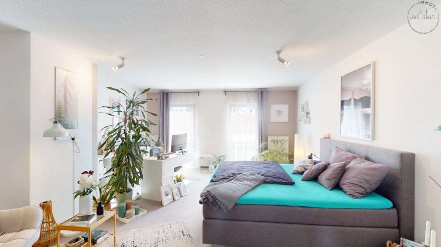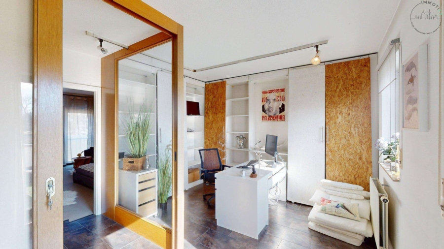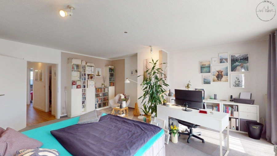 Das Dachgeschoss ist als privater Rückzugsbereich gestaltet. Hier befindet sich ein weiteres Schlafzimmer mit eigenem Tageslichtbad mit Dusche und WC. Ein weiteres Zimmer eignet sich hervorragend als Büro. Ein besonderes Highlight ist die ca. 18 m² große Dachterrasse in Südausrichtung, die mit ihrem schönen Ausblick einen zusätzlichen Wohnwert bietet – ein Ort für Ruhe, Sonne und Privatsphäre.