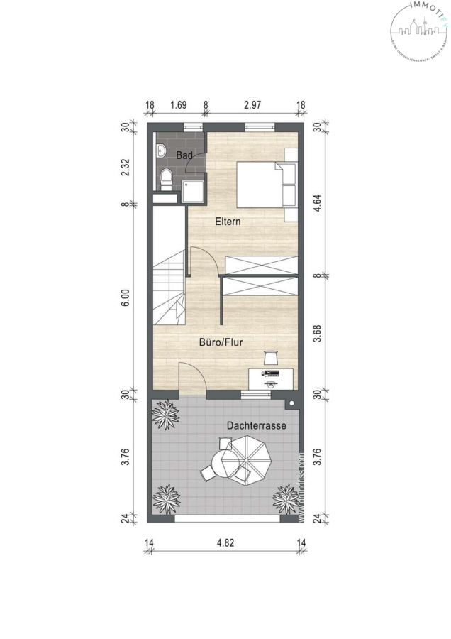 Schlafzimmer mit Bad en suite, Büro-/Gästezimmer, Dachterrasse (Süd)