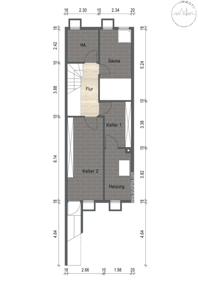Das Untergeschoss überzeugt mit funktionaler und zugleich hochwertiger Nutzung: Neben einer Waschküche stehen zwei große Kellerräume zur Verfügung. Ein Saunaraum mit Dusche ergänzt das Angebot und schafft einen privaten Wellnessbereich im eigenen Zuhause.