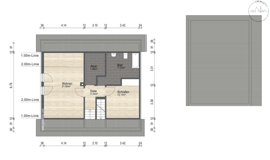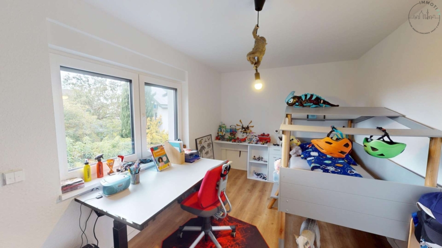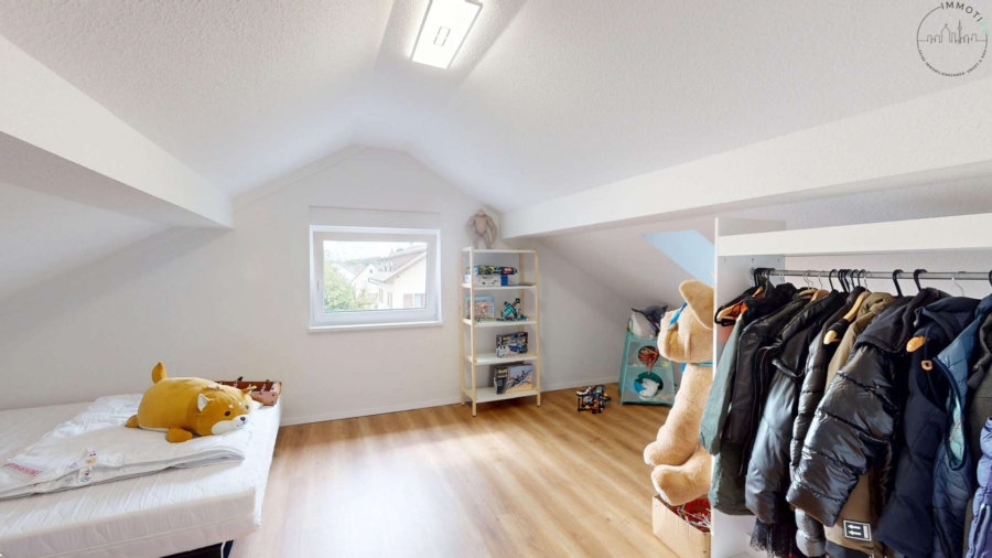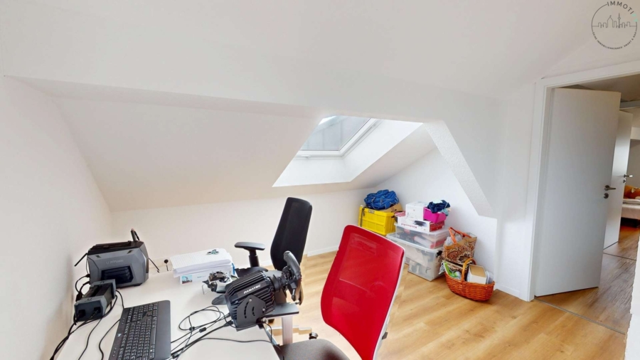 - Dachgeschoss: zwei weitere Zimmer, flexibel nutzbar als Büro, Gäste- oder Kinderzimmer, zusätzliche Abstellkammer sowie ein separates WC