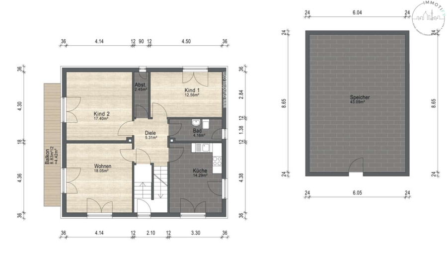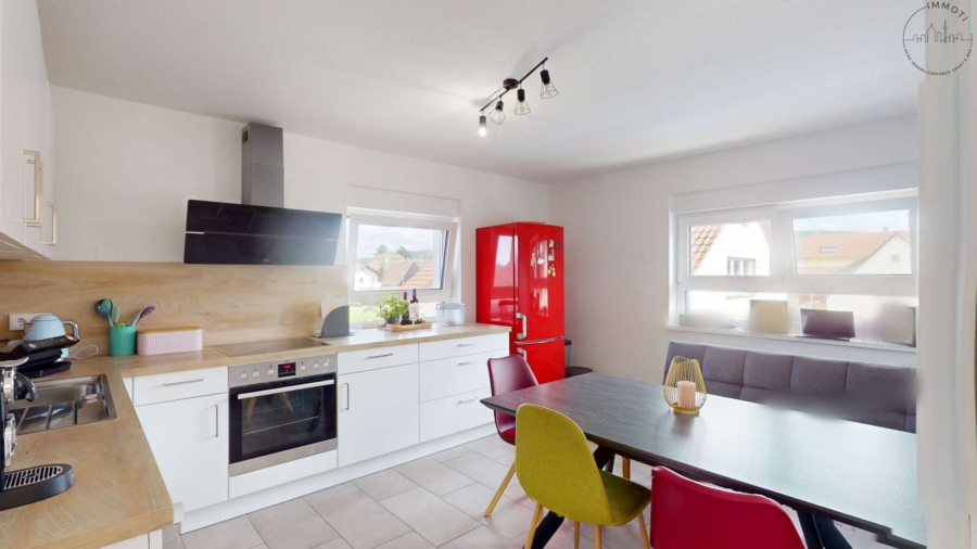 - Obergeschoss: Diele, Wohnzimmer, Schlafzimmer, Kinderzimmer, Abstellkammer, Tageslichtbad sowie eine Wohnküche mit hochwertiger Einbauküche