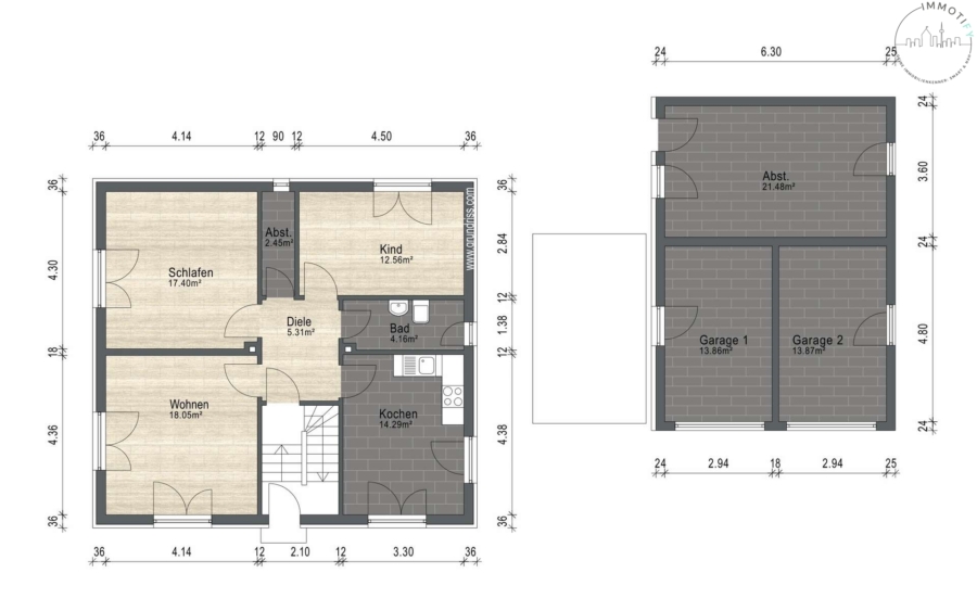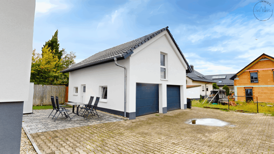 - Doppelgarage im separaten Garagenhaus mit Speicher und Abstellraum im hinteren Bereich