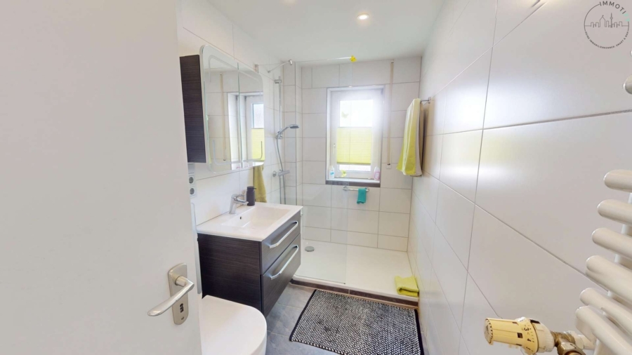 - EG: Modernisiertes Tageslichtbad mit Dusche, WC und Fenster