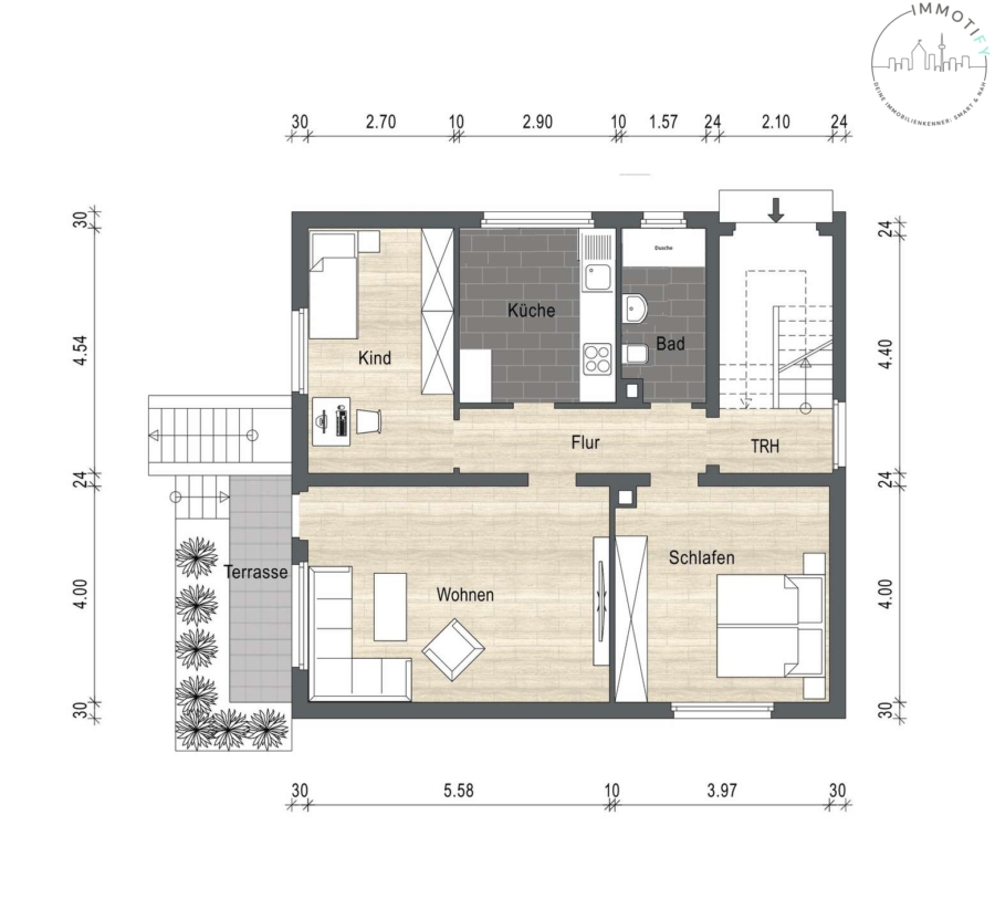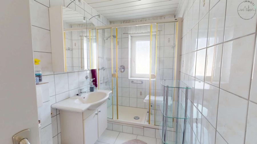 - OG: Badezimmer mit Dusche, WC und Fenster