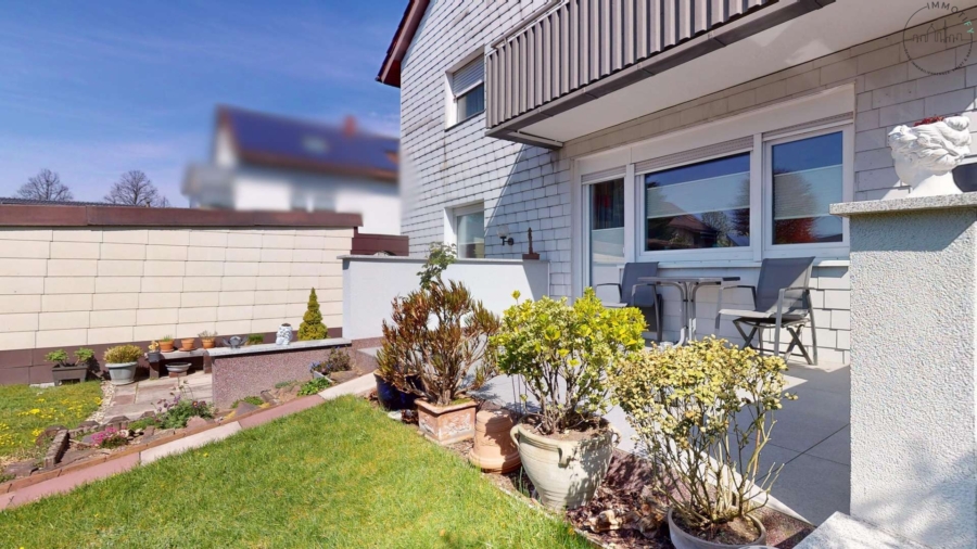 Erdgeschoss: Drei Zimmer, Tageslichtbad, Gartenzugang, Terrasse