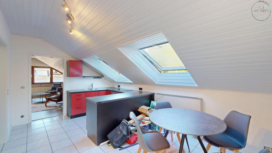 Geräumige und voll möblierte 2-Zimmer-DG-Wohnung in ruhigem 4-Familienhaus mit Arztpraxis im EG aus dem Baujahr 1982. Die Wohnung ist verkehrsgünstig im beliebten Ettlinger Stadtteil Ettlingen-Bruchhausen gelegen. Bei einer Grundfläche von ca. 61 m² und einer Wohnfläche von etwa 52 m² ist sie ideal für eine Einzelperson geeignet.