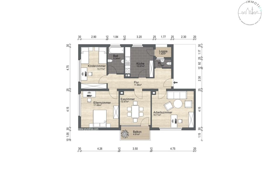 - Separater Waschraum innerhalb der Wohnung