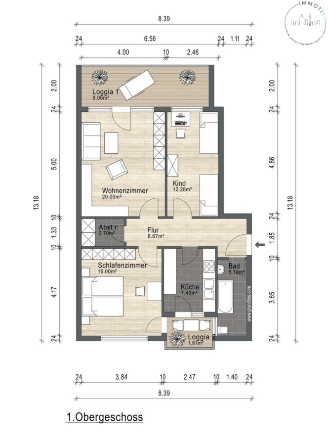 - Zwei Balkone (großer Balkon in Ost-Ausrichtung / kleiner Balkon in West-Ausrichtung)