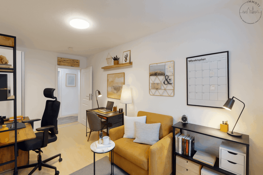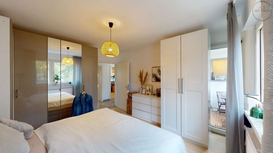 Ein weiteres großzügiges Zimmer mit Zugang zum zweiten Balkon in Westausrichtung lässt sich flexibel als Schlafzimmer, Arbeitszimmer oder Gästezimmer nutzen – je nach individuellem Bedarf.