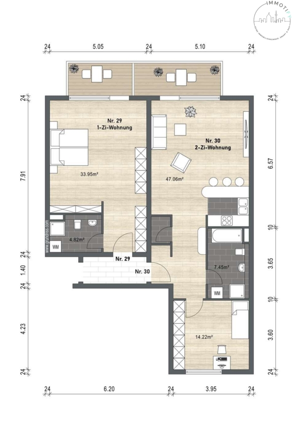 Neben dem Erwerb als Gesamtpaket besteht auch die Möglichkeit, die beiden Wohneinheiten einzeln zu erwerben. Dadurch ergibt sich eine zusätzliche Flexibilität, sowohl für Kapitalanleger als auch für Eigennutzer, die zunächst nur eine Einheit nutzen oder vermieten möchten.
