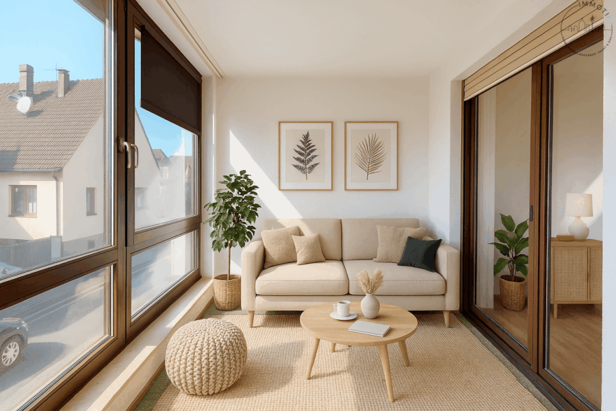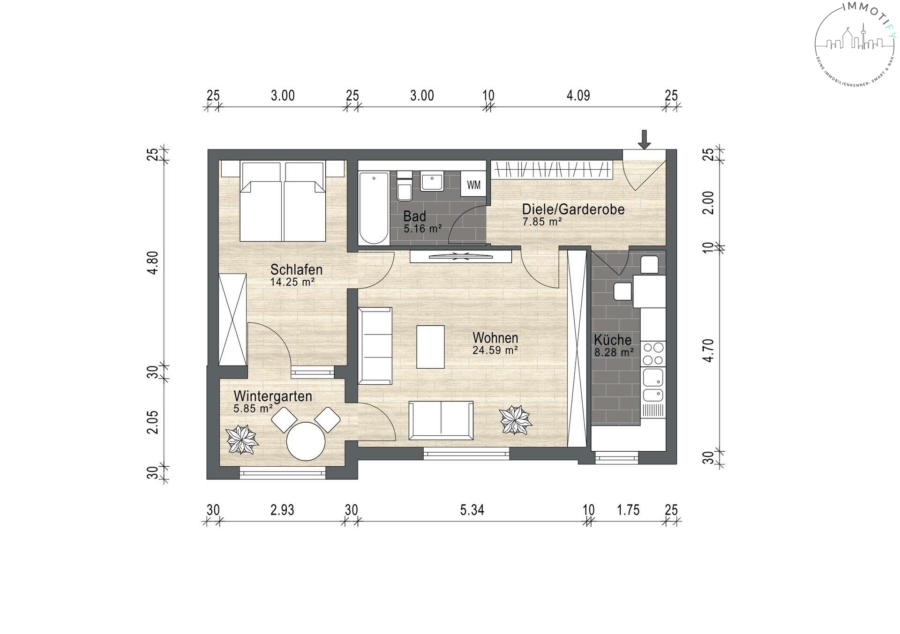Ein besonderes Highlight ist der großzügige Wintergarten, der sowohl vom Wohnzimmer als auch vom Schlaf-/Kinderzimmer aus zugänglich ist. Hier können Sie entspannt Ihren Morgenkaffee genießen, den Tag ausklingen lassen oder einfach mit Ihren Liebsten Zeit verbringen.