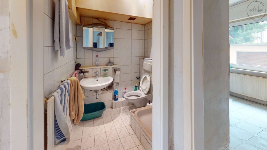 Während die Wohnung selbst vollständig sanierungsbedürftig ist und im derzeitigen Zustand einer umfassenden Kernsanierung bedarf, präsentiert sich das Gebäude insgesamt in einem sehr gepflegten und fortlaufend instand gehaltenen Zustand.