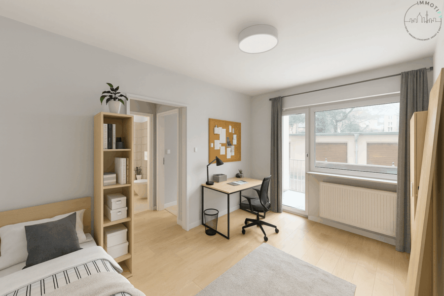 Dank ihres praktischen Grundrisses eignet sich die Wohnung optimal für die zimmerweise Vermietung an zwei Studenten.