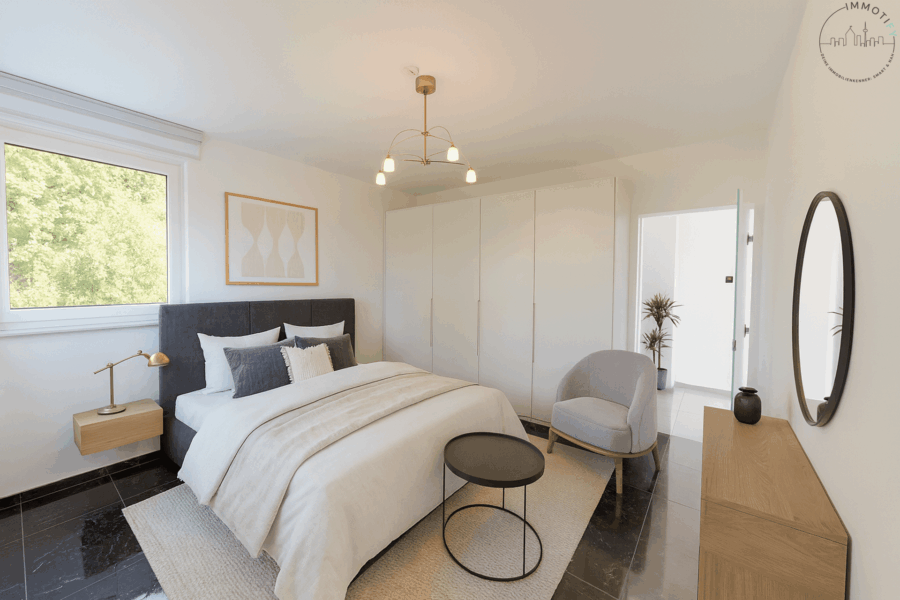 Die Ausstattung zeigt sich hochwertig und zeitgemäß. Die gesamte Wohnung ist mit großformatigen Hochglanzfliesen versehen und wird über eine Fußbodenheizung beheizt, die für ein angenehmes Raumklima sorgt. Im Übrigen befindet sich eine Klimaanlage im Wohnbereich.