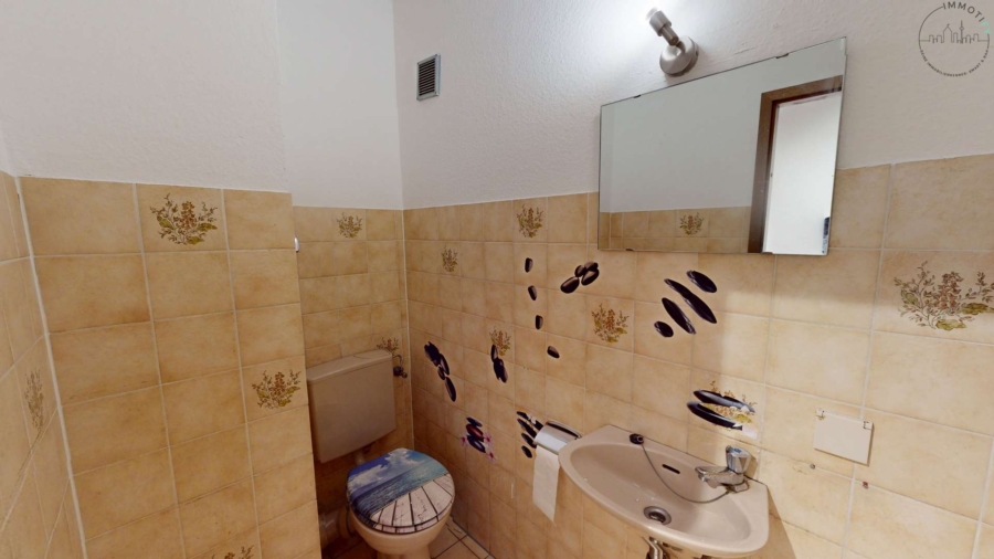 Der Eingangsbereich empfängt klar und einladend. Eine separate Küche, ein praktischer Abstellraum sowie ein Gäste-WC ergänzen das Wohnkonzept sinnvoll. Das Badezimmer ist funktional angebunden und bietet gleichzeitig Potenzial, den Wohnstil bei Bedarf an heutige Ansprüche anzupassen.