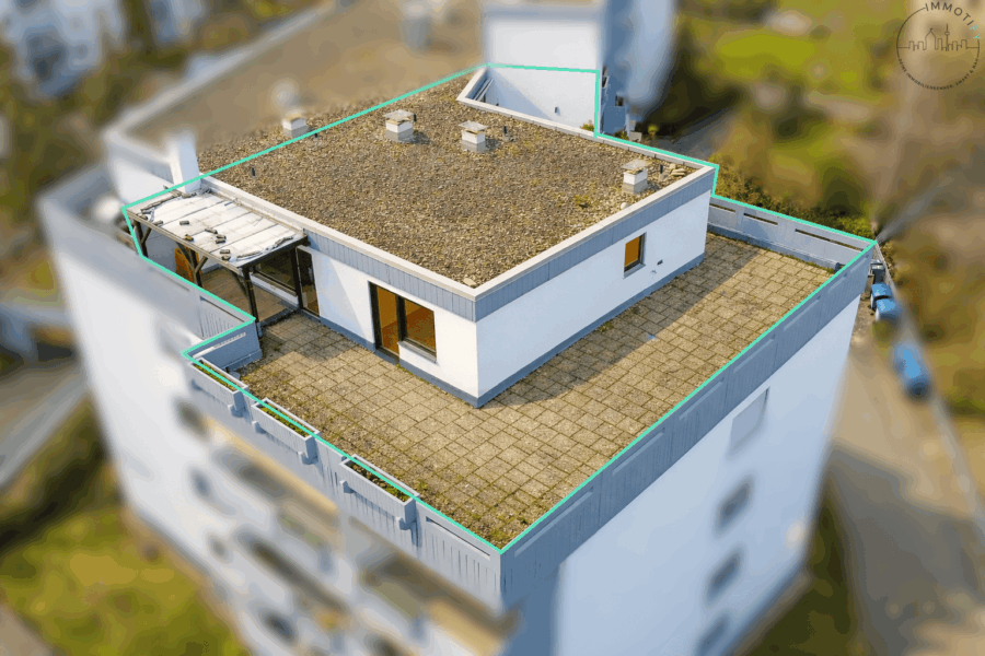 Die angegebene Wohnfläche beträgt ca. 153 m². Diese setzt sich aus rund 92 m² klassischer Wohnfläche sowie der großzügigen Dachterrasse mit insgesamt ca. 121 m² Fläche zusammen, welche anteilig in die Wohnflächenberechnung eingeflossen ist. So entsteht ein außergewöhnliches Wohngefühl mit viel Freiraum, Licht und besonderer Lebensqualität unter freiem Himmel.